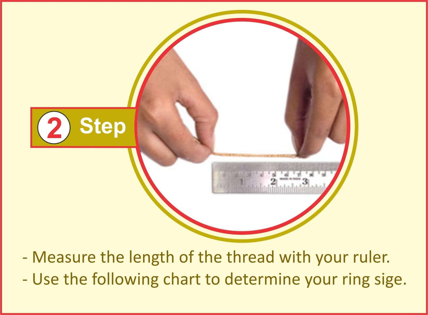This is a chart that will be extremely helpful for you to determine the ring size that you need. You can either make use of a paper or a small piece of string to measure the area that will be occupied by the ring. When it becomes a complete circle, make a mark on such string. This will be helpful for you to compare with the chart that is mentioned below. For extra width, you can add another size to accommodate.